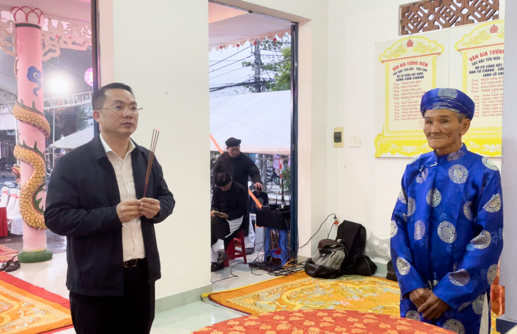 Đồng chí Nguyễn Văn Hùng, Thành ủy viên, Bí thư Quận ủy đến dâng hương tại Đình làng.