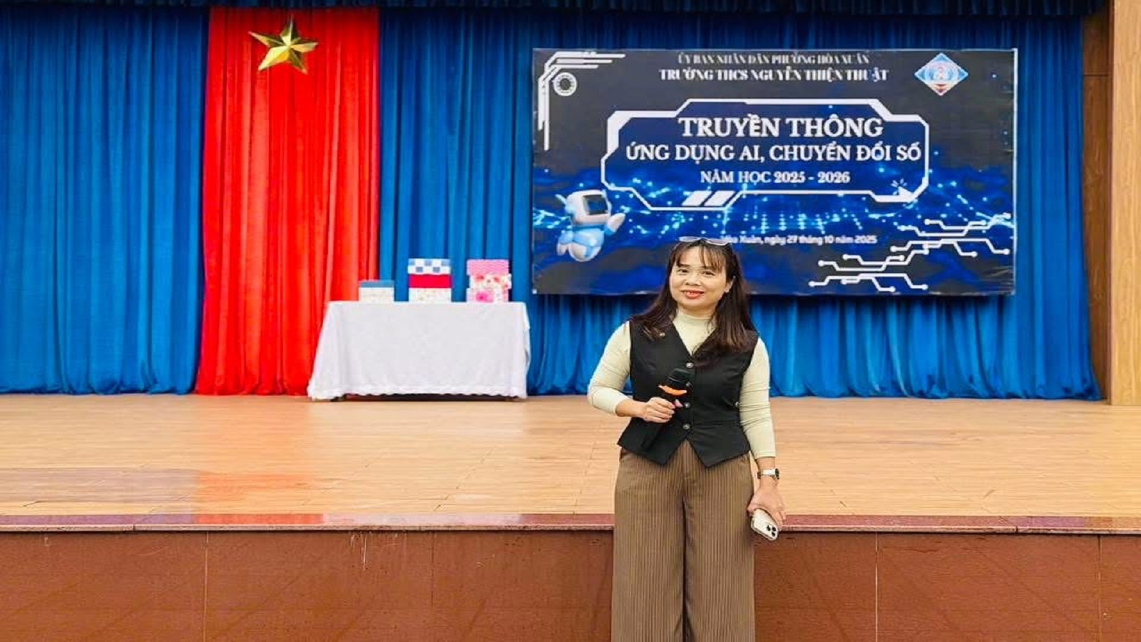 Trong bối cảnh cuộc Cách mạng công nghiệp 4.0 phát triển mạnh mẽ, chuyển đổi số đang trở thành yêu cầu tất yếu của ngành giáo dục. Với mục tiêu đưa công nghệ hiện đại đến gần hơn với học sinh, đồng thời xây dựng môi trường học tập đổi mới, sáng ngày 1/12/2025, UBND phường Hòa Xuân phối hợp với Trường THCS Nguyễn Thiện Thuật đã tổ chức Ngày hội “Chuyển đổi số – Ứng dụng AI trong học đường”, mang đến nhiều hoạt động trải nghiệm sáng tạo, bổ ích và giàu ý nghĩa giáo dục cho học sinh.